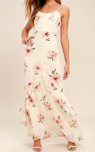 Order the Bring The Rain Cream Floral Print Maxi Dress Here.