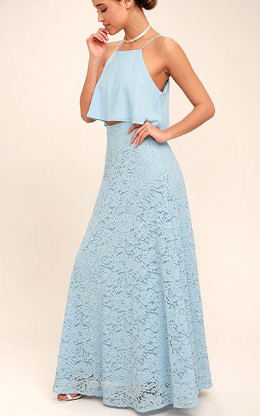 Love At First Sight Light Blue Lace Two-Piece Maxi Dress