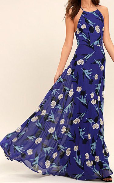 Sociable Navy Blue Lace Halter Maxi Dress