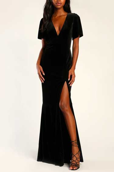 Order the Elegant Evenings Black Velvet Flutter Sleeve Trumpet Maxi Dress Here.
