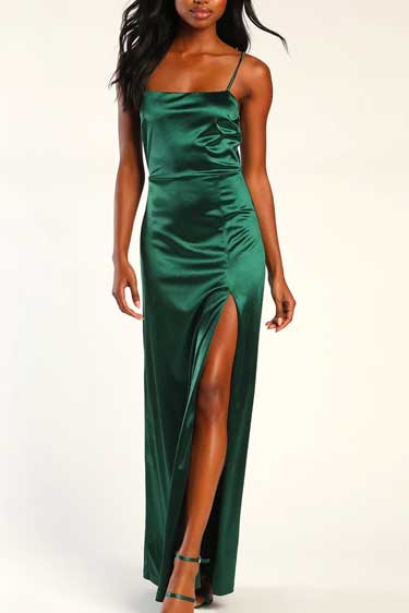 Order the Fanciful Occasions Emerald Green Satin Sleeveless Maxi Dress Here.