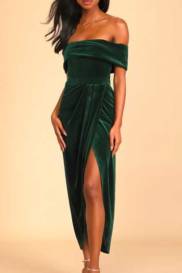 I’m Enchanted Emerald Green Velvet Off-the-Shoulder Maxi Dress