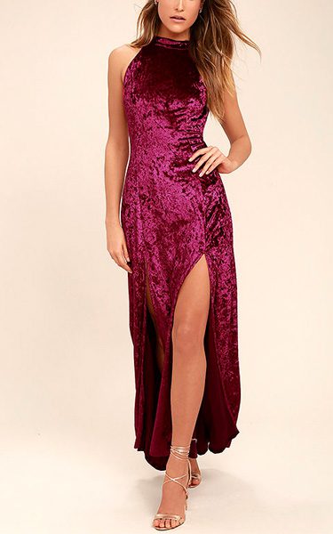 In The Louvre Burgundy Velvet Backless Maxi Dress